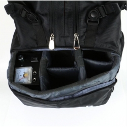 The bag also features built in tattoo machine compartments that can hold, laptop sleeve, paintbrush pockets, music/phone/iphone compartment, headphone slit, fully enclosed compartments, sketchbook pouch, power supply strap and 2 customizable modular cases for all of your tattoo supplies, parts and art.